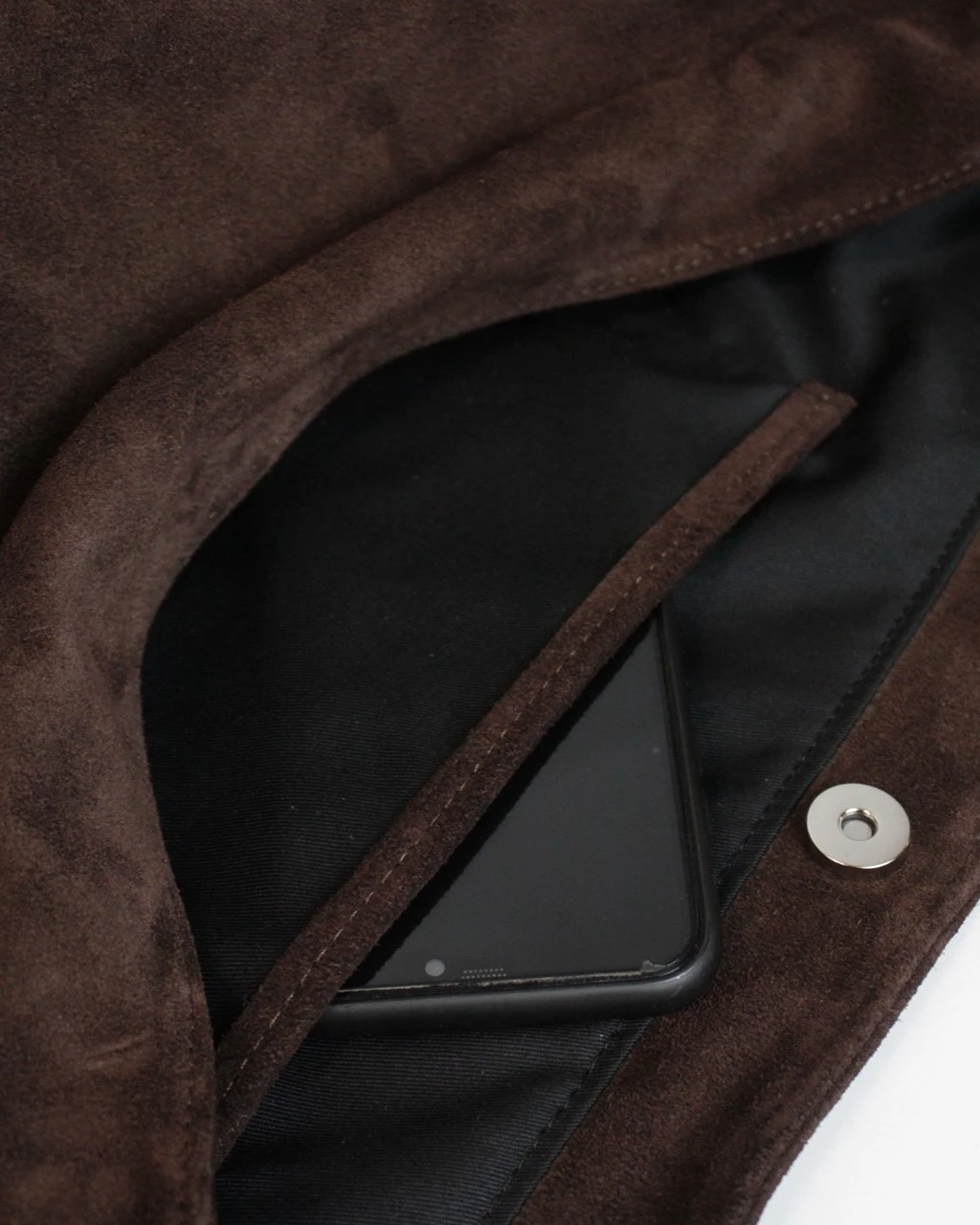 Alcyone is a stylish large tote crafted from Italian suede leather, designed for elegance and practical everyday use. Its minimalist silhouette and spacious interior make it the perfect companion for work, travel, or days when you need to carry more. Wear it as a roomy shoulder bag or sleek tote