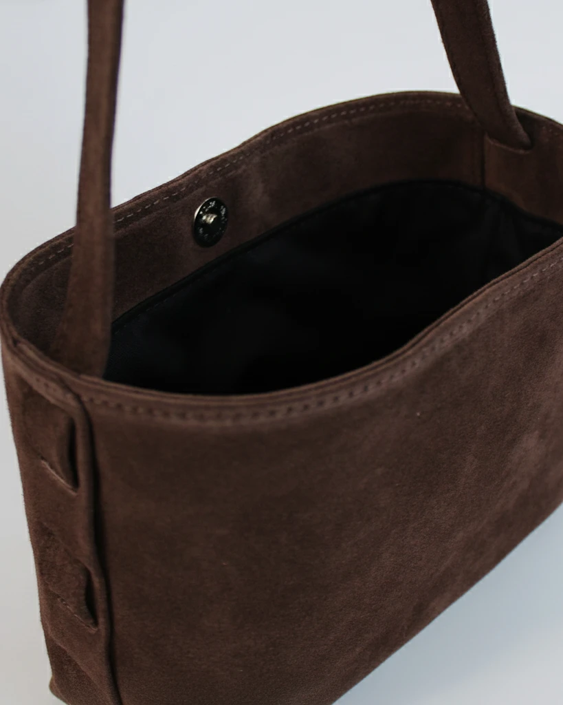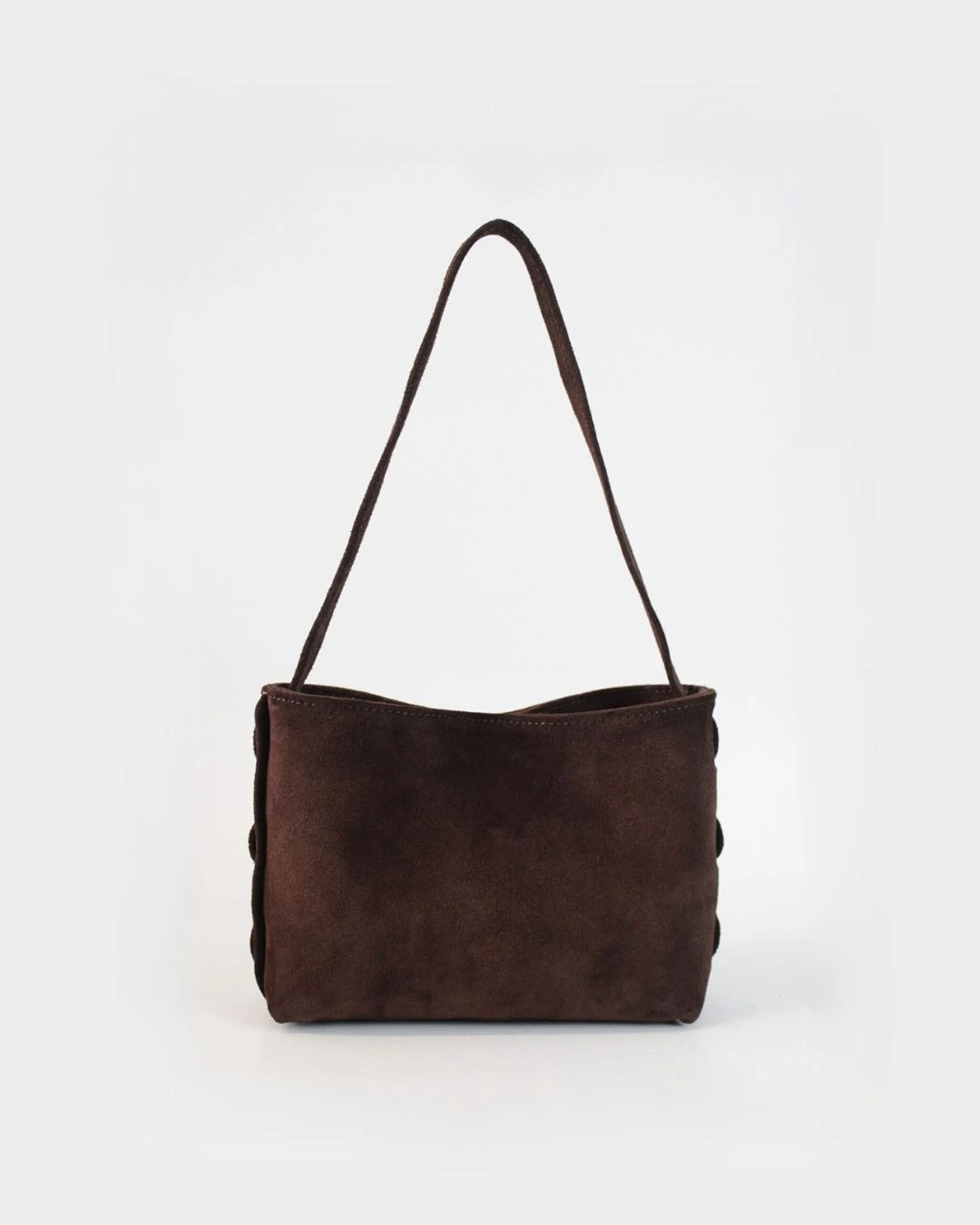 The Zenia shoulder bag is a stylish medium-small handbag crafted from suede leather. With its minimalistic yet intricate design, this bag can be worn as a handbag or a shoulder bag. Its compact size is ideal for carrying your everyday essentials, making the Zenia the perfect companion for a night out or your daily adventures.