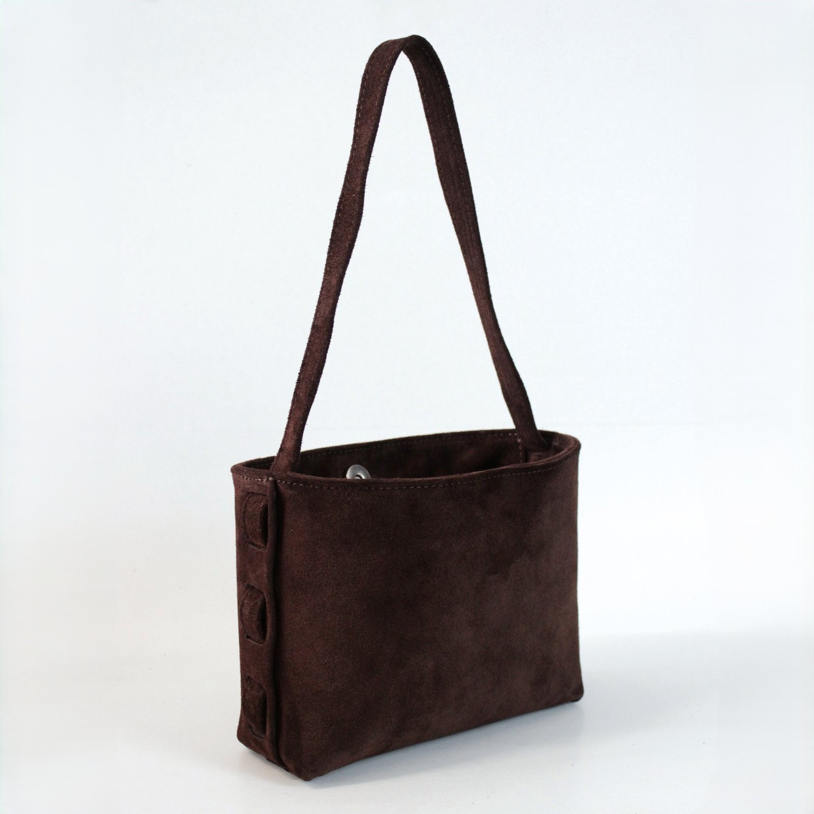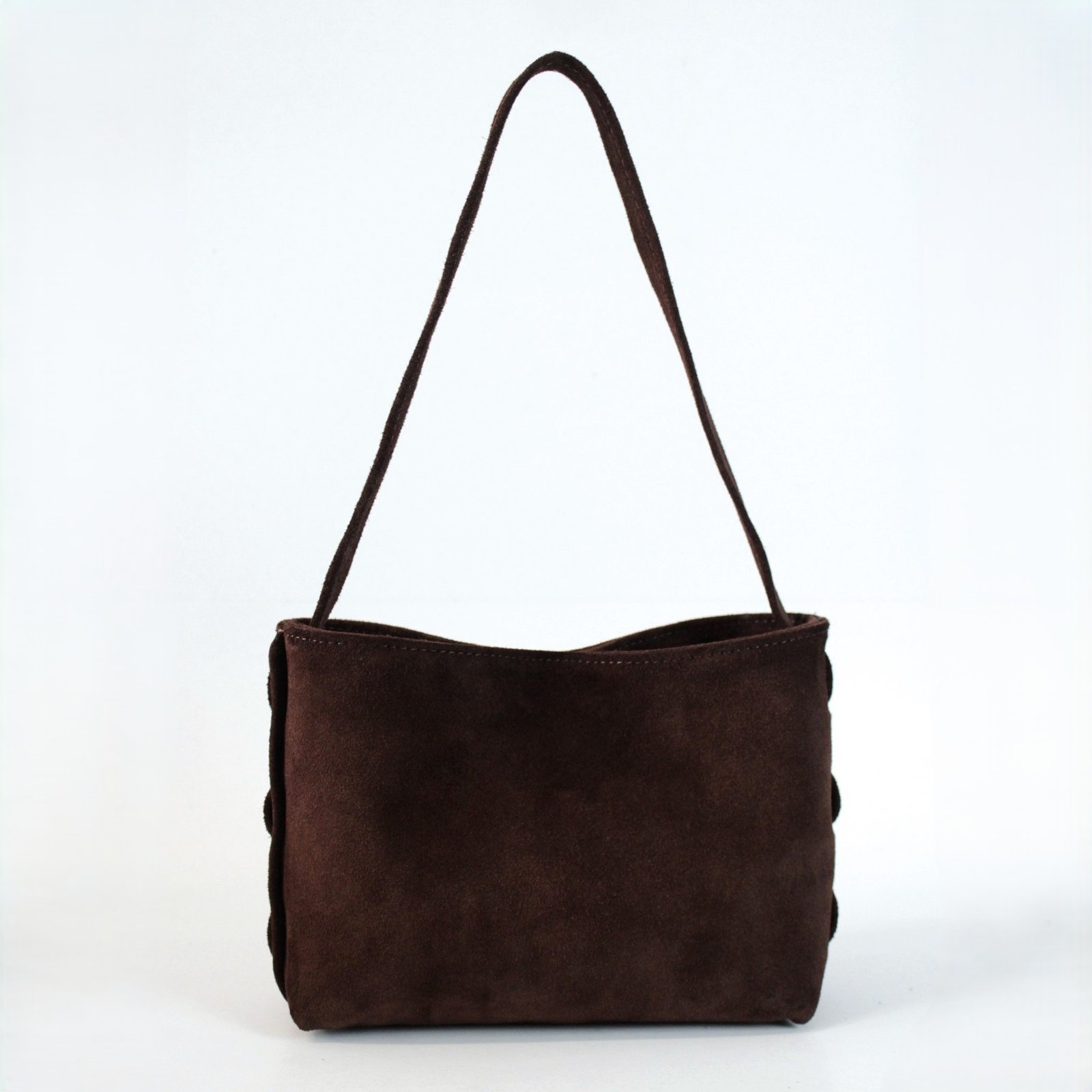 Zenia shoulder bag is a stylish medium-small handbag crafted from suede leather. With its minimalistic yet intricate design, this bag can be worn as a handbag or a shoulder bag. Its compact size is ideal for carrying your everyday essentials, making the Zenia the perfect companion for a night out or your daily adventures.